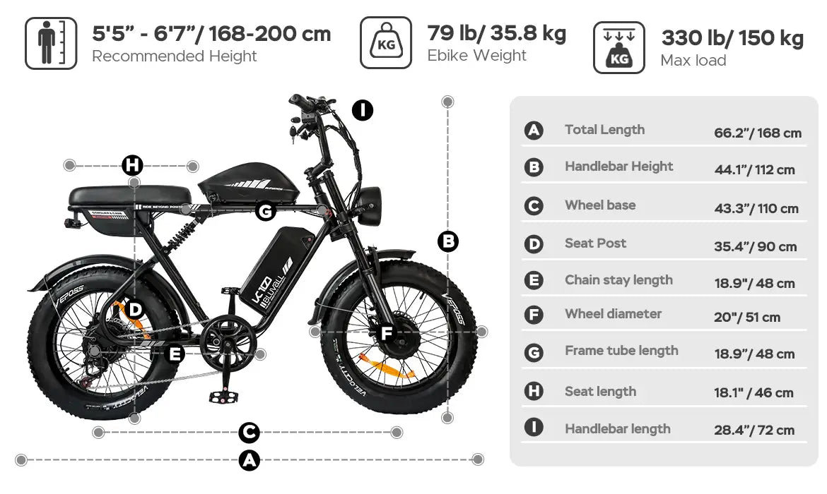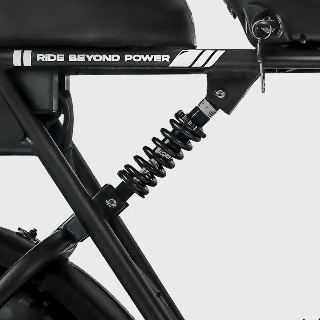 The electric bike has a hydraulic front fork and a rearshock (850LB) which helps you navigate a variety ofterrain without being hurt or rolling over.