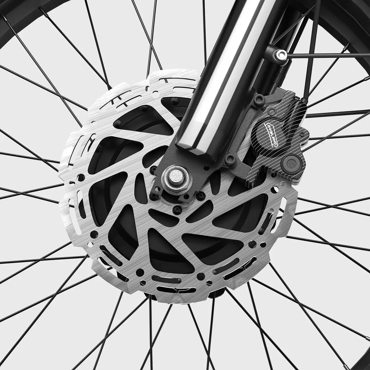 The front and rear hydraulic disc brakes(180mm)deliver precise braking power, designed to maximizecontrol over the rear wheel. The superior brakingforce from the front disc brakes ensures rapid andefficient stopping, essential for safety andperformance.